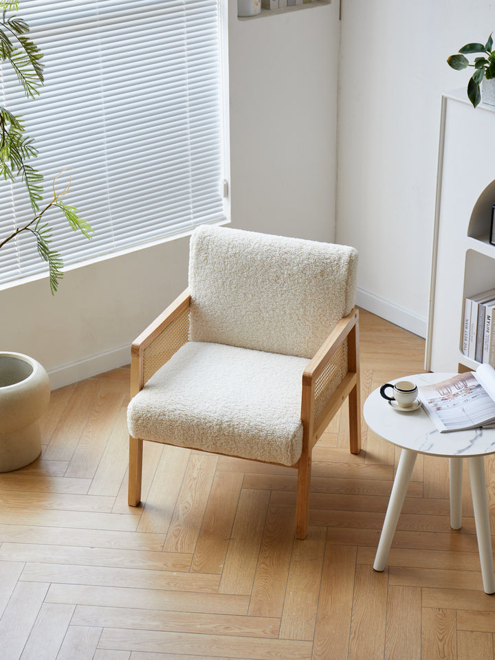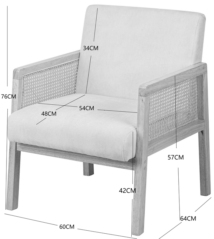 BORGO - Fauteuil de salon en bois massif et cannage blanc