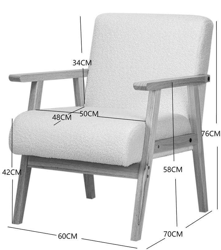 LOUIS - Fauteuil de salon en bois massif et bouclettes blanches