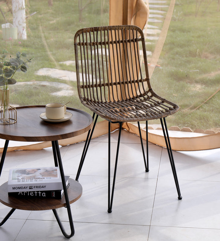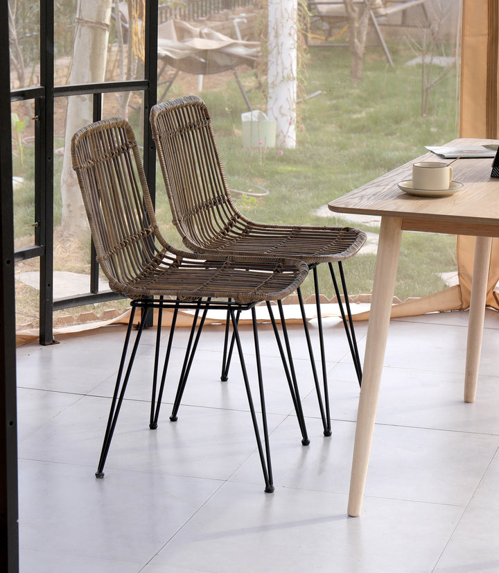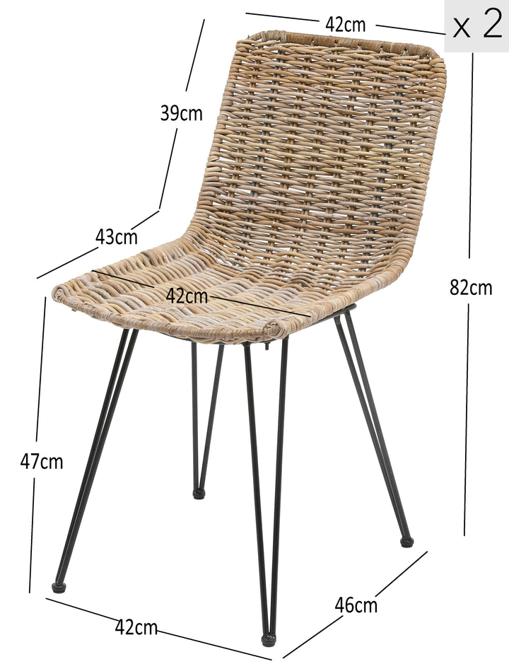 LUMPUR - Lot de 2 chaises en métal et rotin naturel