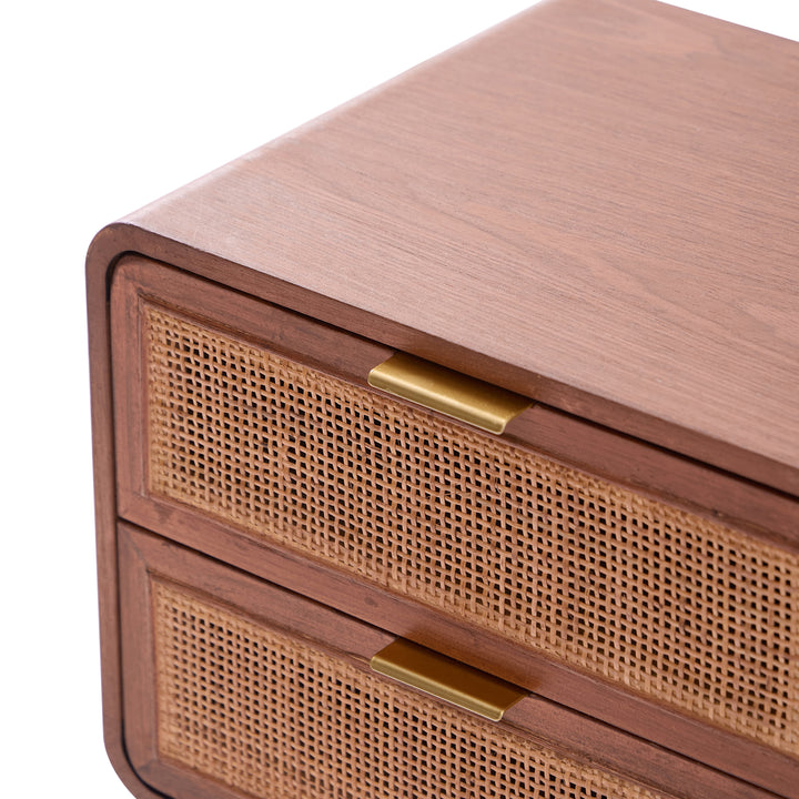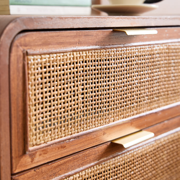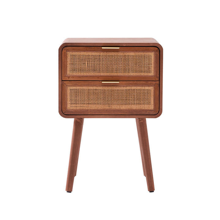 MALI - Table de chevet 2 tiroirs en rotin et bois de noyer