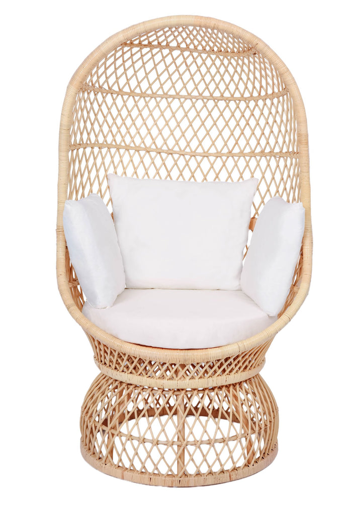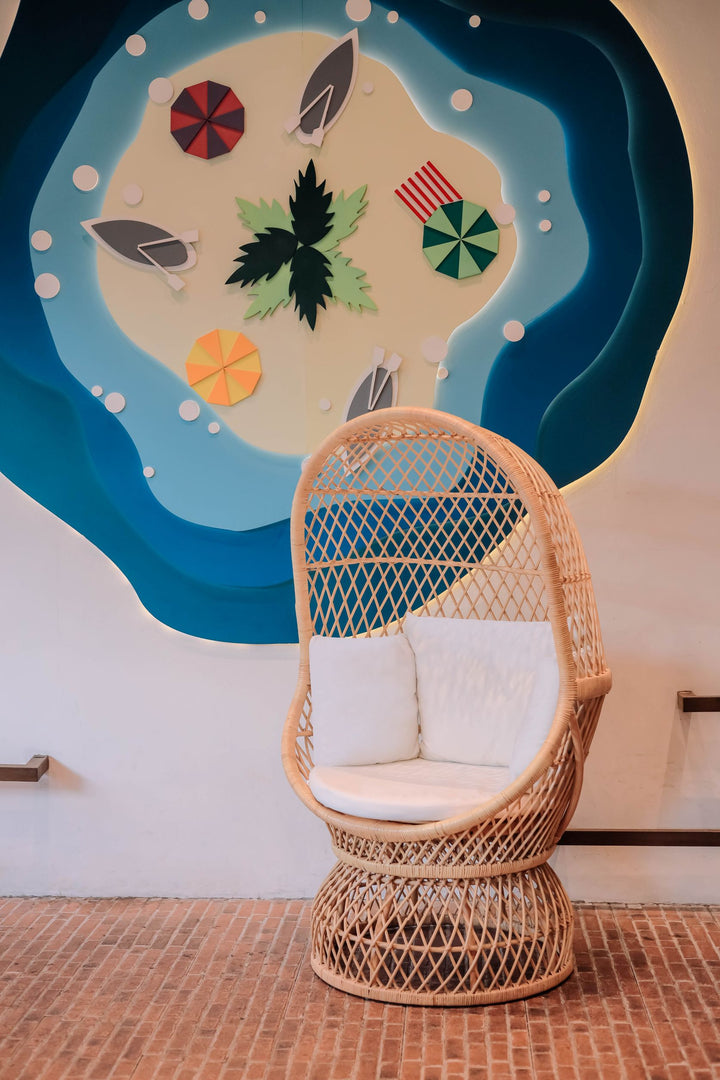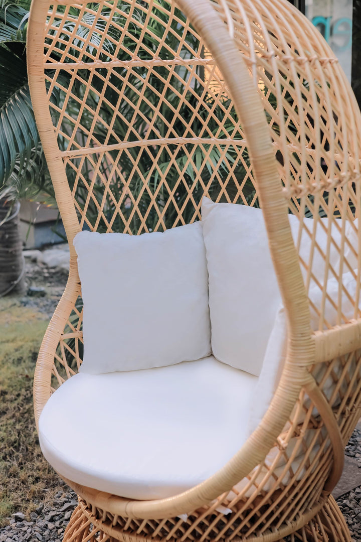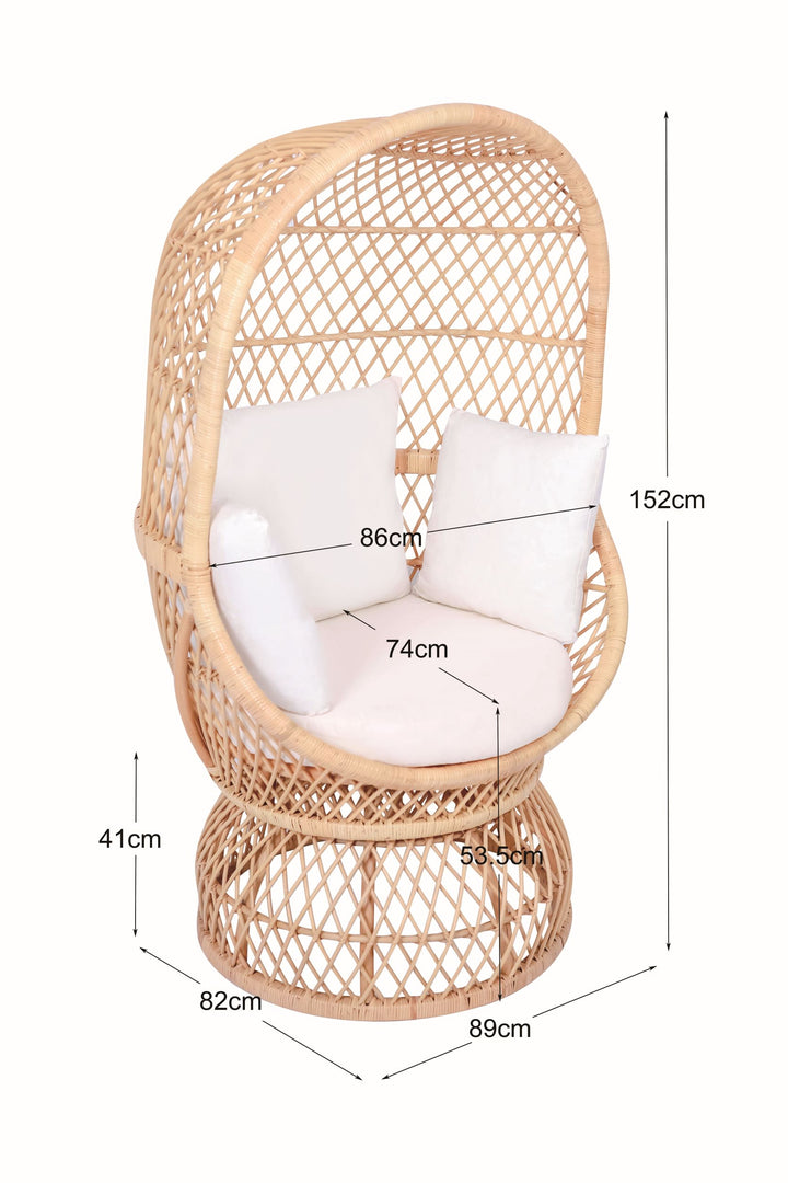 MANADO - Fauteuil oeuf en rotin naturel et tissu beige