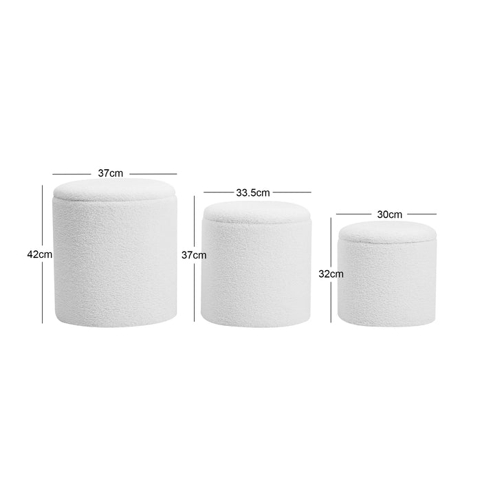 NARVIK - Set de 3 poufs avec rangement en bois et bouclettes blanches